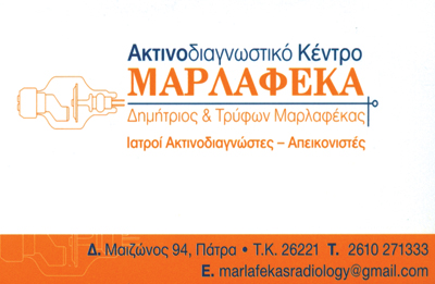 Ακτινολόγοι - Ακτινοθεραπευτές - ΡαδιολόγοιΥγείαΜαίζωνος 94, ΠάτραΠΑΤΡΑ ΑΧΑΪΑΣΑΧΑΪΑΠΕΛΟΠΟΝΝΗΣΟΣ2610271333marlafekas.radiology@gmail.comΜοιραστείτε τις πληροφορίες της επιχείρησής στα κοινωνικά δίκτυα: