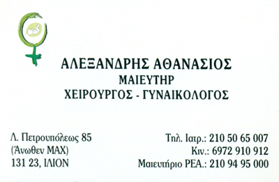 Μαιευτήρες - ΓυναικολόγοιΥγείαΠετρουπόλεως 85, Ίλιον, ΑττικήΙΛΙΟΝ ΑΤΤΙΚΗΣΑΤΤΙΚΗΣΤΕΡΕΑ ΕΛΛΑΔΑ210506500769729109122105065007sakisalex@hotmail.com Test Παπ Κονδυλώματα Ενδομητρίωση Πολύποδας Ινομυώματα Τοκετός - κύηση Εμμηνόπαυση Συνεργάτης με "Ρέα - Μητέρα" Μοιραστείτε τις πληροφορίες της επιχείρησής στα κοινωνικά δίκτυα: