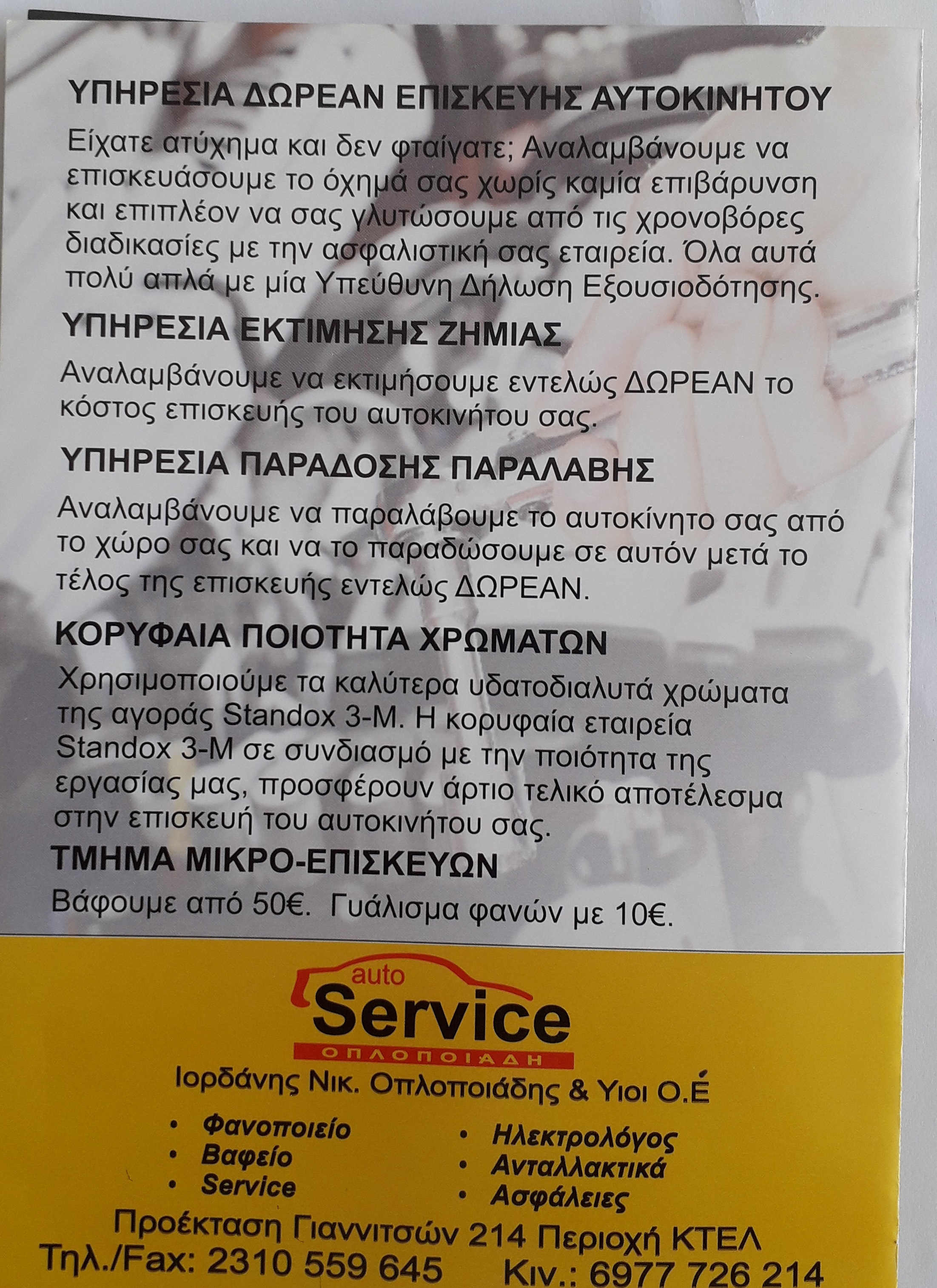 Συνεργεία ΑυτοκινήτωνΦανοποιία και ΒαφέςΑυτοκινήτων Ανταλλακτικά, Είδη και ΑξεσουάρAuto - MotoΠροέκταση Γιαννιτσών 214, Μενεμένη Θεσσαλονίκης ΜΕΝΕΜΕΝΗ ΘΕΣΣΑΛΟΝΙΚΗΣΘΕΣΣΑΛΟΝΙΚΗΜΑΚΕΔΟΝΙΑ23105596456977726214oplopiadisiordanis@gmail.comΜοιραστείτε τις πληροφορίες της επιχείρησής στα κοινωνικά δίκτυα: