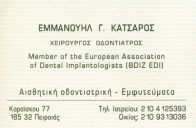 Χειρουργοί Οδοντίατροι - ΣτοματολόγοςΥγείαΚαραΐσκου 77, Πειραιάς, ΑττικήΠΕΙΡΑΙΑΣ ΑΤΤΙΚΗΣΑΤΤΙΚΗΣΤΕΡΕΑ ΕΛΛΑΔΑ21041253936944530073manos@otenet.grwww.katsaros-dentist.grΜοιραστείτε τις πληροφορίες της επιχείρησής στα κοινωνικά δίκτυα: