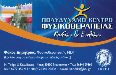 ΦυσικοθεραπευτέςΥγείαΕλευθερίας 12, ΝαύπακτοςΝΑΥΠΑΚΤΟΣ ΑΙΤΩΛΟΑΚΑΡΝΑΝΙΑΣΑΙΤΩΛΟΑΚΑΡΝΑΝΙΑΣΤΕΡΕΑ ΕΛΛΑΔΑ2634029860697745921169774544392634029860physkids1@gmail.comΕξειδίκευση σε παιδιά ΑΜΕΑ Φυσικοθεραπευτικό εργαστήριο Μοιραστείτε τις πληροφορίες της επιχείρησής στα κοινωνικά δίκτυα: