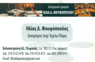 Δικηγόροι και Δικηγορικά ΓραφείαΥπηρεσίεςΚολοκοτρώνη 62, ΠειραιάςΠΕΙΡΑΙΑΣ ΑΤΤΙΚΗΣΑΤΤΙΚΗΣΤΕΡΕΑ ΕΛΛΑΔΑ210412247869329090112104125813ilfoufopoulos@gmail.comΜοιραστείτε τις πληροφορίες της επιχείρησής στα κοινωνικά δίκτυα: