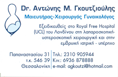 Μαιευτήρες - ΓυναικολόγοιΥγείαΑλ. Παπαναστασίου 31 (έναντι Ιπποκ. Νοσοκομείο), ΘεσσαλονίκηΘΕΣΣΑΛΟΝΙΚΗ ΘΕΣΣΑΛΟΝΙΚΗΣΘΕΣΣΑΛΟΝΙΚΗΜΑΚΕΔΟΝΙΑ23109059446936878888agkoutzi@hotmail.comΑισθητική -Κοσμετική γυναικολογία Laser Δέχεται κατόπιν ραντεβού. Μοιραστείτε τις πληροφορίες της επιχείρησής στα κοινωνικά δίκτυα: