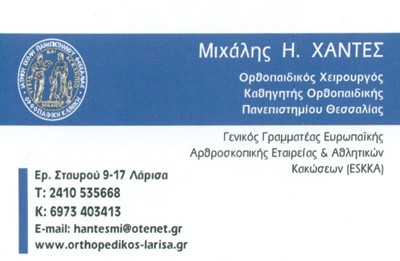 Ο κ. Χαντές Μιχάλης είναι Αναπληρωτής Καθηγητής Ορθοπαιδικής του Πανεπιστημιακού Νοσοκομείου Λάρισας.