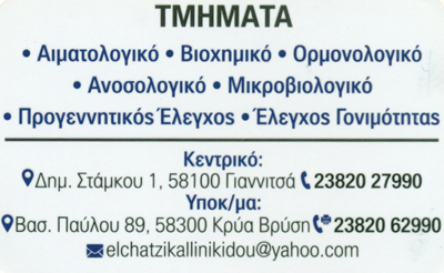 Με μηχανήματα τελευταίας τεχνολογίας και εξειδικευμένο επιστημονικό προσωπικό διασφαλίζεται η έγκυρη παράδοση αποτελεσμάτων καθώς και η ποιότητα των υπηρεσιών.