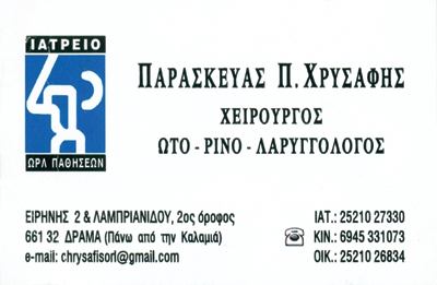 ΩτορινολαρυγγολόγοιΥγείαΕιρήνης 2, ΔράμαΔΡΑΜΑ ΔΡΑΜΑΣΔΡΑΜΑΜΑΚΕΔΟΝΙΑ25210273302521026834 - Οικία6945331073chrysafisorl@gmail.comΜοιραστείτε τις πληροφορίες της επιχείρησής στα κοινωνικά δίκτυα: