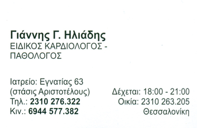 ΚαρδιολόγοιΥγείαΕγνατία 63, ΘεσσαλονίκηΘΕΣΣΑΛΟΝΙΚΗ ΘΕΣΣΑΛΟΝΙΚΗΣΘΕΣΣΑΛΟΝΙΚΗΜΑΚΕΔΟΝΙΑ23102763226944577382Ωράριο: Δευτέρα - Παρασκευή 10:00 - 13:00 & 18:00 - 20:30 Μοιραστείτε τις πληροφορίες της επιχείρησής στα κοινωνικά δίκτυα:
