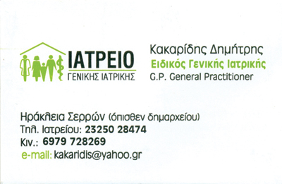 Γενική ΙατρικήΥγείαΓονατά Στεφάνου 1, ΗρακλειάΗΡΑΚΛΕΙΑ ΣΕΡΡΩΝΣΕΡΡΕΣΜΑΚΕΔΟΝΙΑ23250284746979728269kakaridis@yahoo.grΜοιραστείτε τις πληροφορίες της επιχείρησής στα κοινωνικά δίκτυα: