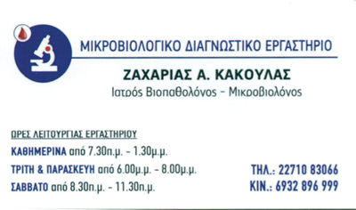 Μικροβιολόγοι - ΒιοπαθολόγοιΜικροβιολογικά ΕργαστήριαΥγείαΠαχνού Αλεξάνδρου 3, ΧίοςΧΙΟΣΝΗΣΙΑ ΑΙΓΑΙΟΥ ΠΕΛΑΓΟΥΣ2271083066kakoulaslab@gmail.comΜικροβιολογικό Διαγνωστικό Ιατρείο Ζαχαρία Α ΚακούλαΜοιραστείτε τις πληροφορίες της επιχείρησής στα κοινωνικά δίκτυα: