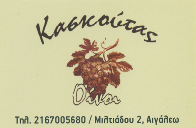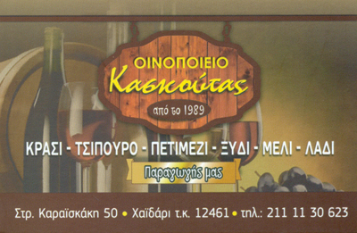 Οινοπνευματοποιία - Οινοποιία - Ποτοποιία - ΖυθοποιίαΕμπόριο και Τυποποίηση ΕλαιόλαδουΛοιπάΜιλτιάδου 2, ΑιγάλεωΑΙΓΑΛΕΩ ΑΤΤΙΚΗΣΑΤΤΙΚΗΣΤΕΡΕΑ ΕΛΛΑΔΑ21670056806977068940Αποστάγματα οίνου Οινοποιείο Ελαιόλαδο Κασκουτας οινοιΜοιραστείτε τις πληροφορίες της επιχείρησής στα κοινωνικά δίκτυα: