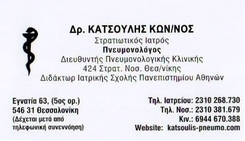 Διευθυντής Πνευμολογικής Κλινικής 424 Στρατιωτικού Νοσοκομείου Θεσσαλονίκης