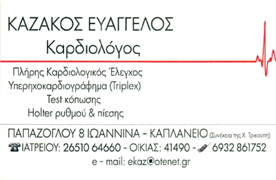 καρδιολόγος Καζάκος Ευάγγελος παρέχει στο ιατρείο του, τις εξής ιατρικές υπηρεσίες :