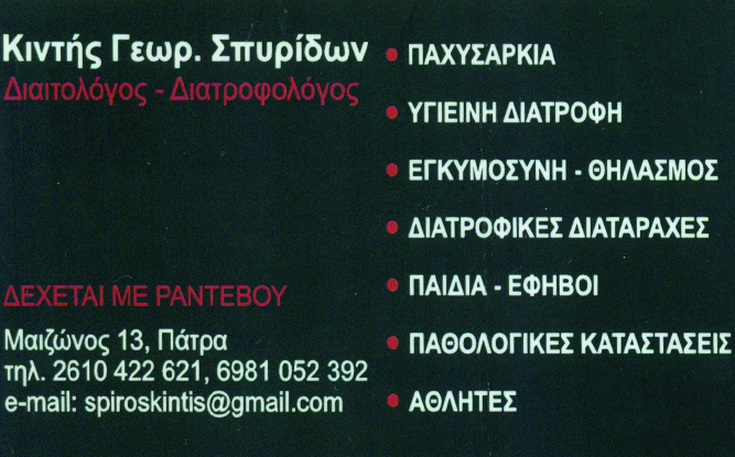 Διαιτολόγοι και Σύμβουλοι ΥγιεινήςΥγείαΜαιζώνος 13, ΠάτραΠΑΤΡΑ ΑΧΑΪΑΣΑΧΑΪΑΠΕΛΟΠΟΝΝΗΣΟΣ26104226216981052392spiroskintis@gmail.comΜοιραστείτε τις πληροφορίες της επιχείρησής στα κοινωνικά δίκτυα: