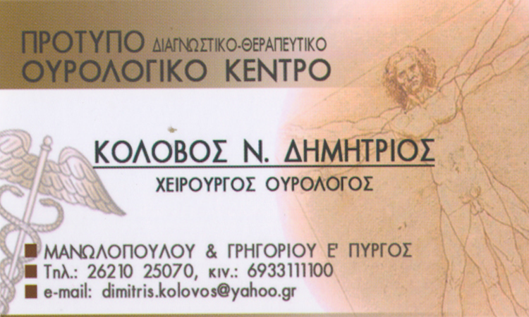 Ουρολόγοι - ΑνδρολόγοιΟυρολόγοιΥγείαΓρηγορίου Έ 9 & Μανωλοπούλου, ΠύργοςΠΥΡΓΟΣ ΗΛΕΙΑΣΗΛΕΙΑΠΕΛΟΠΟΝΝΗΣΟΣ26210250706933111100dimitris.kolovos@yahoo.grΟΥΡΟΛΟΓΙΚΟ ΚΕΝΤΡΟΜοιραστείτε τις πληροφορίες της επιχείρησής στα κοινωνικά δίκτυα: