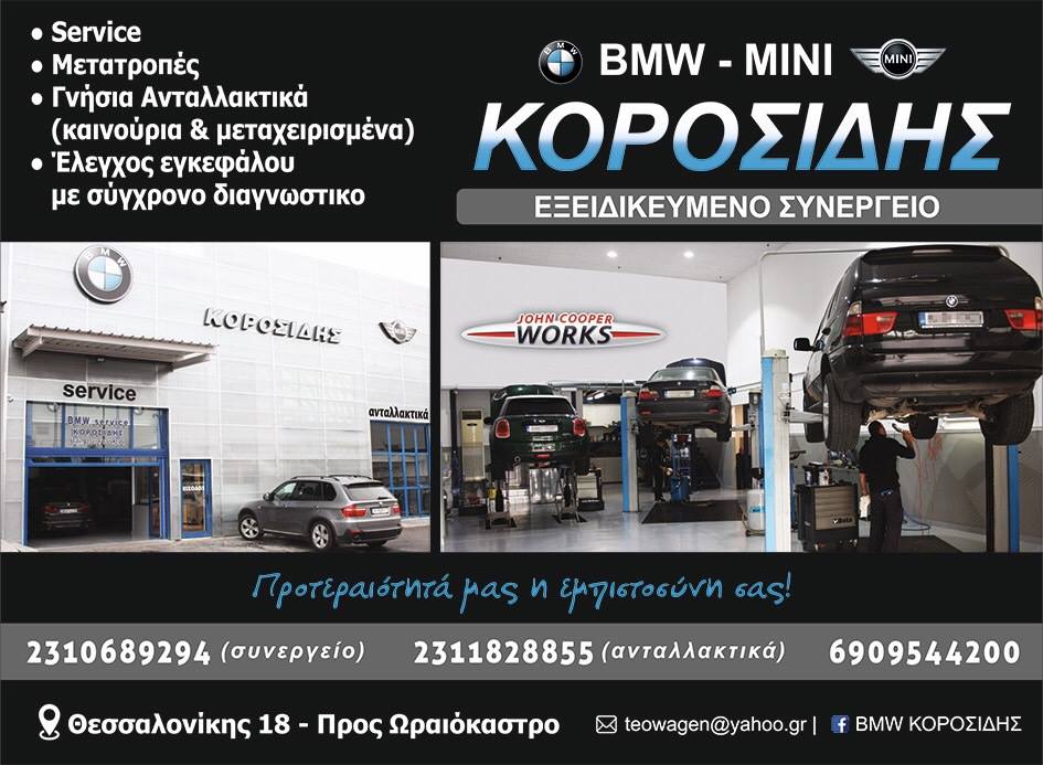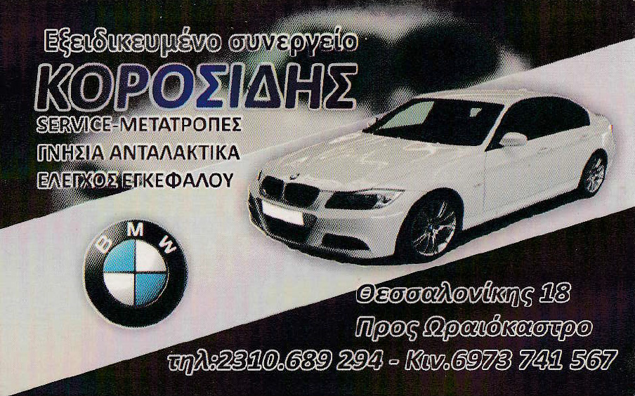 Συνεργεία ΑυτοκινήτωνΑυτοκινήτων Ανταλλακτικά, Είδη και ΑξεσουάρAuto - Moto4ο Χλμ Θεσσαλονίκης - Ωραιοκάστρου, ΘεσσαλονίκηΘΕΣΣΑΛΟΝΙΚΗ ΘΕΣΣΑΛΟΝΙΚΗΣΘΕΣΣΑΛΟΝΙΚΗΜΑΚΕΔΟΝΙΑ23106892942311828855 - Ανταλλακτικάteowagen@yahoo.grΑνταλλακτικά και Service BMW - MINI www.bmw-parts.car.grBMW ΚΟΡΟΣΙΔΗΣΜοιραστείτε τις πληροφορίες της επιχείρησής στα κοινωνικά δίκτυα: