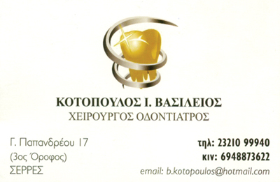 ΟδοντίατροιΧειρουργοί Οδοντίατροι - ΠεριοδοντολόγοιΥγείαΓεωργίου Παπανδρέου 17, ΣέρρεςΣΕΡΡΕΣΜΑΚΕΔΟΝΙΑ23210999406948873622b.kotopoulos@hotmail.comΜοιραστείτε τις πληροφορίες της επιχείρησής στα κοινωνικά δίκτυα:
