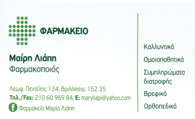 Το φαρμακείο μας λειτουργεί από τον Μάρτιο του 2013 από την πτυχιούχο του πανεπιστημίου Αθηνών Μαρία Λιάπη με υπευθυνότητα, αγάπη και συνέπεια!