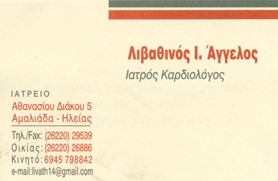 ΚαρδιολόγοιΥγείαΔιάκου 5, ΑμαλιάδαΑΜΑΛΙΑΔΑ ΗΛΕΙΑΣΗΛΕΙΑΠΕΛΟΠΟΝΝΗΣΟΣ26220295396945798842livath14@gmail.comΜοιραστείτε τις πληροφορίες της επιχείρησής στα κοινωνικά δίκτυα: