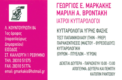 ΚυτταρολόγοιΥγείαΛεωφόρος Κουντουριώτου 84, ΡέθυμνοΡΕΘΥΜΝΟ ΡΕΘΥΜΝΟΥΡΕΘΥΜΝΟΚΡΗΤΗ283105157569747022862831051774gmarkakis@hotmail.grΜοιραστείτε τις πληροφορίες της επιχείρησής στα κοινωνικά δίκτυα: