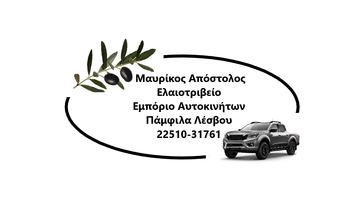 ΕλαιοτριβείαΕμπόριο και Τυποποίηση ΕλαιόλαδουΑντιπροσωπείες - Εισαγωγές ΑυτοκινήτωνΛοιπάAuto - MotoΠαμφίλα, ΜυτιλήνηΜΥΤΙΛΗΝΗ ΛΕΣΒΟΥΛΕΣΒΟΣΝΗΣΙΑ ΑΙΓΑΙΟΥ ΠΕΛΑΓΟΥΣ22510317616976239755apmayrikos@gmail.com2η επιχείρηση: Εμπόριο αυτοκινήτων Διεύθυνση: Παμφίλα, Μυτιλήνη Τηλ.: 2251031761 Μοιραστείτε τις πληροφορίες της επιχείρησής στα κοινωνικά δίκτυα: