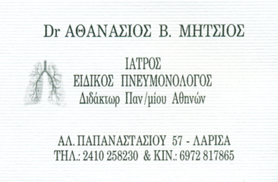 Πνευμονολόγοι - ΦυματιολόγοιΥγείαΑλεξάνδρου Παπαναστασίου 57, ΛάρισαΛΑΡΙΣΑΘΕΣΣΑΛΙΑ24102582306972817865at.mitsios@gmail.comΜοιραστείτε τις πληροφορίες της επιχείρησής στα κοινωνικά δίκτυα:
