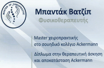 ΦυσικοθεραπευτέςΥγείαΒασ. Γεωργίου - Θερμοπυλών και Σμηναγού Μητράκη, ΞάνθηΞΑΝΘΗΘΡΑΚΗ25410666466948041910vatsip.bandak@gmail.comManual Therapy Αποκατάσταση νευρολογικών παθήσεων Αθλητικές κακώσεις Μπαντάκ ΒατζίπΜοιραστείτε τις πληροφορίες της επιχείρησής στα κοινωνικά δίκτυα: