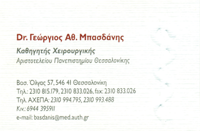 ΧειρουργοίΥγείαΛεωφόρος Βασιλίσσης Όλγας 57, ΘεσσαλονίκηΘΕΣΣΑΛΟΝΙΚΗ ΘΕΣΣΑΛΟΝΙΚΗΣΘΕΣΣΑΛΟΝΙΚΗΜΑΚΕΔΟΝΙΑ231081517969443959112310833026gbasdanis@gmail.comΔέχεται Κατόπιν Ραντεβού www.basdanis.grΜοιραστείτε τις πληροφορίες της επιχείρησής στα κοινωνικά δίκτυα: