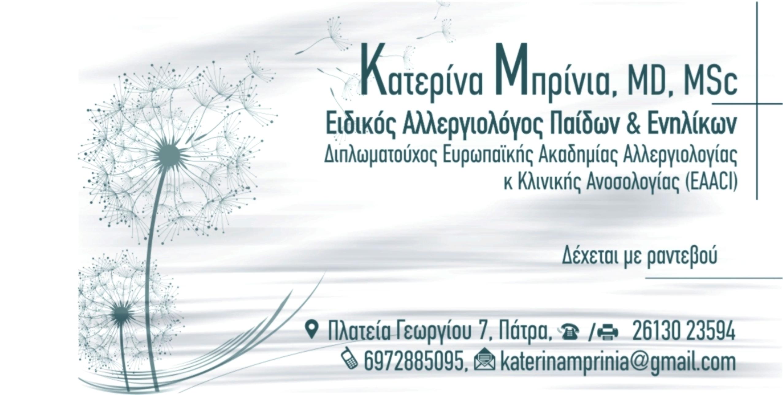 Η ειδική αλλεργιολόγος παίδων και ενηλίκων Μπρίνια Κατερίνα διατηρεί