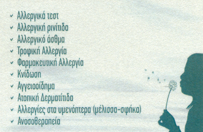 καθώς και οι αλλεργικές δερματοπάθειες (παιδικό ατοπικό έκζεμα, κνιδώσεις ενηλίκων).