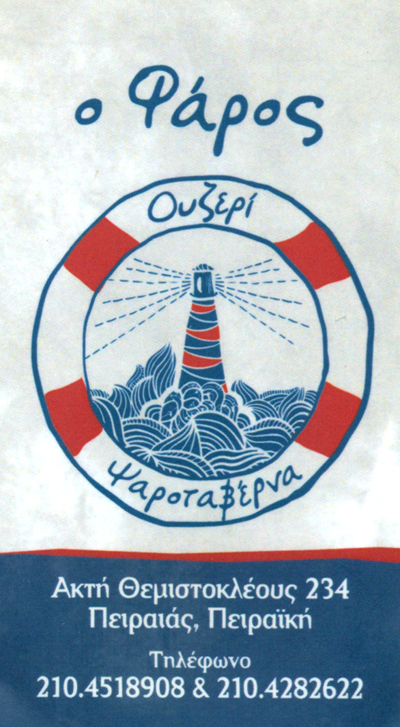 Μεζεδοπωλεία - Ουζερί - ΤσιπουράδικαΈξοδοςΑκτή Θεμιστοκλέους 234, ΠειραιάςΠΕΙΡΑΙΑΣ ΑΤΤΙΚΗΣΑΤΤΙΚΗΣΤΕΡΕΑ ΕΛΛΑΔΑ210451890821042826226937111533www.farospiraeus.grΟ ΦάροςΜοιραστείτε τις πληροφορίες της επιχείρησής στα κοινωνικά δίκτυα: