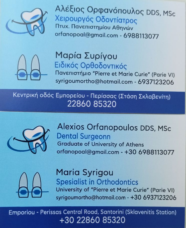 Χειρουργοί ΟδοντίατροιΥγείαΕμπορειό, 84703ΣΑΝΤΟΡΙΝΗ - ΘΗΡΑ ΚΥΚΛΑΔΩΝΚΥΚΛΑΔΕΣΝΗΣΙΑ ΑΙΓΑΙΟΥ ΠΕΛΑΓΟΥΣ22860853206988113077orfanopoal@gmail.comΔέχεται με ραντεβού Μοιραστείτε τις πληροφορίες της επιχείρησής στα κοινωνικά δίκτυα: