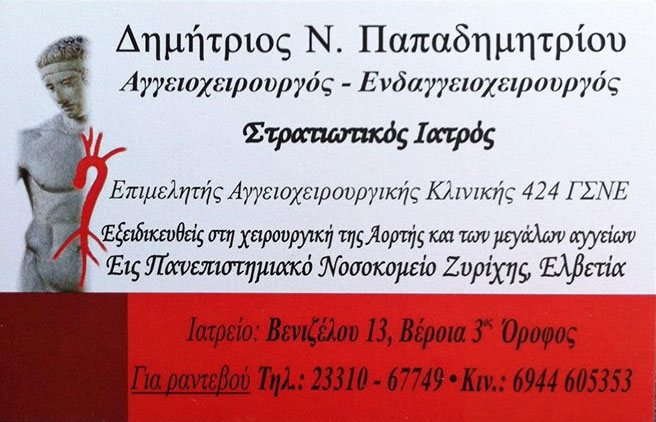 Ο Αγγειοχειρουργός - Αγγειολόγος Παπαδημητρίου Δημήτριος αντιμετωπίζει Αρτηριακές Παθήσεις