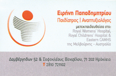 ΠαιδίατροιΥγείαΔαμβέργηδων 52, ΗράκλειοΗΡΑΚΛΕΙΟ ΗΡΑΚΛΕΙΟΥΗΡΑΚΛΕΙΟΚΡΗΤΗ281072110269498700012810721102eirini.papadim@gmail.comΜοιραστείτε τις πληροφορίες της επιχείρησής στα κοινωνικά δίκτυα: