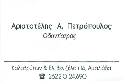 ΟδοντίατροιΧειρουργοί ΟδοντίατροιΥγείαΕλευθέριου Βενιζέλου 14 & Καλαβρύτων, Αμαλιάδα, 27200ΑΜΑΛΙΑΔΑ ΗΛΕΙΑΣΗΛΕΙΑΠΕΛΟΠΟΝΝΗΣΟΣ2622024690Μοιραστείτε τις πληροφορίες της επιχείρησής στα κοινωνικά δίκτυα:
