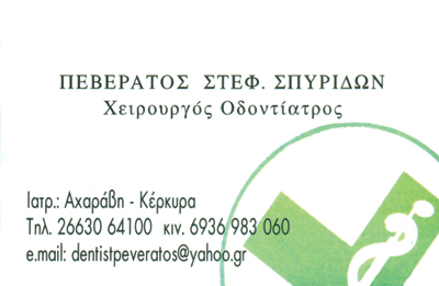 Χειρουργοί ΟδοντίατροιΟδοντίατροιΥγείαΑχαράβη, ΚέρκυραΚΕΡΚΥΡΑΝΗΣΙΑ ΙΟΝΙΟΥ ΠΕΛΑΓΟΥΣ26630641006936983060dentistpeveratos@yahoo.comΜοιραστείτε τις πληροφορίες της επιχείρησής στα κοινωνικά δίκτυα: