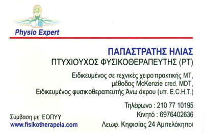 Το φυσικοθεραπευτήριο Physioexpert δημιουργήθηκε απ’τον φυσικοθεραπευτή Παπαστρατή Ηλία.