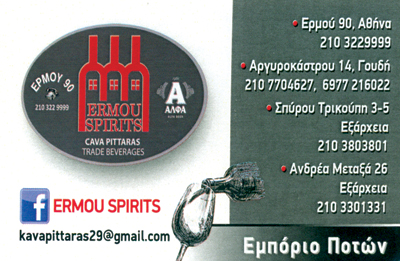 Κάβες ΠοτώνΞηροί ΚαρποίΈξοδοςΛοιπάΑργυροκάστρου 14, ΓουδίΑνδρέα Μεταξά 26, ΕξάρχειαΕρμού 90, ΜοναστηράκιΑΜΠΕΛΟΚΗΠΟΙ ΑΤΤΙΚΗΣΑΘΗΝΑ ΑΤΤΙΚΗΣΖΩΓΡΑΦΟΥ ΑΤΤΙΚΗΣΑΤΤΙΚΗΣΤΕΡΕΑ ΕΛΛΑΔΑ2107704627210330133121032299996977216022ermouspirits@gmail.comkavapittaras29@gmail.comErmou Spirits Cava Pittaras Trade BeveragesΜοιραστείτε τις πληροφορίες της επιχείρησής στα κοινωνικά δίκτυα: