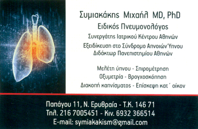 Πνευμονολόγοι - ΦυματιολόγοιΥγείαΣτρατάρχου Αλεξάνδρου Παπάγου 11, Νέα ΕρυθραίαΝΕΑ ΕΡΥΘΡΑΙΑ ΑΤΤΙΚΗΣΑΤΤΙΚΗΣΤΕΡΕΑ ΕΛΛΑΔΑ21670054516932366514symiakakism@gmail.comΔέχεται καθημερινά 17:00-20:00 με ραντεβού. pneumonologos-athens.comΜοιραστείτε τις πληροφορίες της επιχείρησής στα κοινωνικά δίκτυα: