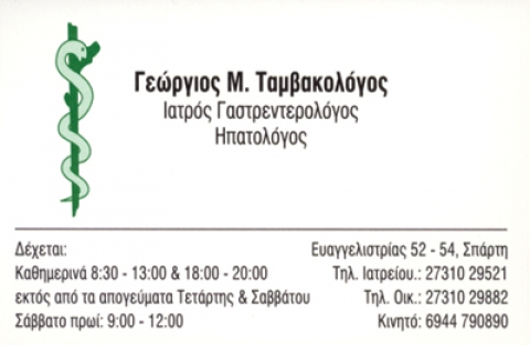 ΓαστρεντερολόγοιΗπατολόγοιΥγείαΕυαγγελιστρίας 54, ΣπάρτηΣΠΑΡΤΗ ΛΑΚΩΝΙΑΣΛΑΚΩΝΙΑΠΕΛΟΠΟΝΝΗΣΟΣ27310295216944790890tambakologos@gmail.comΜοιραστείτε τις πληροφορίες της επιχείρησής στα κοινωνικά δίκτυα: