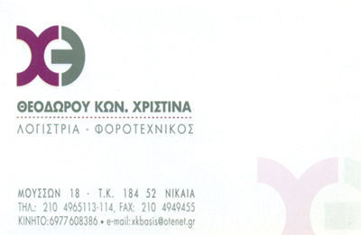 Λογιστικές- Φοροτεχνικές ΥπηρεσίεςΥπηρεσίεςΜουσών 18, ΝίκαιαΝΙΚΑΙΑ ΑΤΤΙΚΗΣΑΤΤΙΚΗΣΤΕΡΕΑ ΕΛΛΑΔΑ21049651132104949455xkbasis@otenet.grΜοιραστείτε τις πληροφορίες της επιχείρησής στα κοινωνικά δίκτυα: