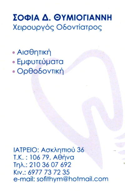 Χειρουργοί ΟδοντίατροιΟδοντίατροιΥγείαΑσκληπιού 36, ΑθήναΑΘΗΝΑ ΑΤΤΙΚΗΣΑΤΤΙΚΗΣΤΕΡΕΑ ΕΛΛΑΔΑ21036076926977737235sofithym@hotmail.comΑιθητική οδοντιατρική Εμφυτεύματα Ορθοδοντική Καθημερινά με ραντεβού. Μοιραστείτε τις πληροφορίες της επιχείρησής στα κοινωνικά δίκτυα: