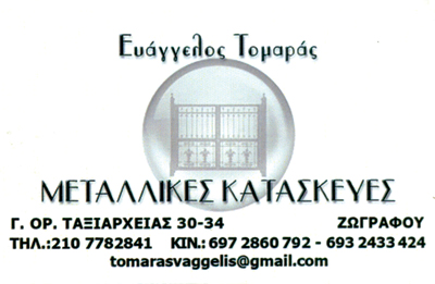 Η επιχείρηση μας ΜΕΤΑΛΛΙΚΕΣ ΚΑΤΑΣΚΕΥΕΣ - ΤΟΜΑΡΑΣ ΕΥΑΓΓΕΛΟΣ βρίσκεται στην Αθήνα στην περιοχή του Ζωγράφου.