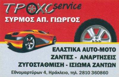 Βουλκανιζατέρ ΕλαστικώνΕλαστικά και ΖάντεςAuto - MotoΕθνομαρτύρων 4, ΗράκλειοΗΡΑΚΛΕΙΟ ΗΡΑΚΛΕΙΟΥΗΡΑΚΛΕΙΟΚΡΗΤΗ28103608606932750546troxoservicesyrmos@gmail.comΜοιραστείτε τις πληροφορίες της επιχείρησής στα κοινωνικά δίκτυα: