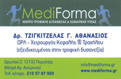 ΩτορινολαρυγγολόγοιΥγείαΩρωπού 2, ΠεριστέριΠΕΡΙΣΤΕΡΙ ΑΤΤΙΚΗΣΑΤΤΙΚΗΣΤΕΡΕΑ ΕΛΛΑΔΑ21057879006972215092info@mediforma.grwww.mediforma.grΜοιραστείτε τις πληροφορίες της επιχείρησής στα κοινωνικά δίκτυα: