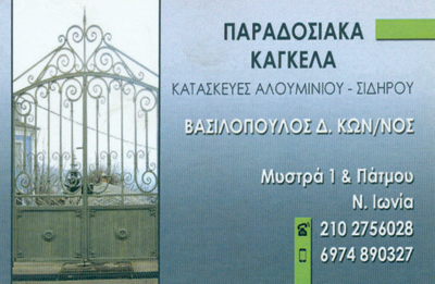 Μεταλλικές ΚατασκευέςΕίδη ΑλουμινίουΚατασκευές ΑλουμινίουΚουφώματαΣυστήματα Αλουμινίου και ΣιδήρουΣιδηροκατασκευέςΔόμηση - ΚατοικίαΛοιπάΜυστρά 1 & Πάτμου, Νέα ΙωνίαΝΕΑ ΙΩΝΙΑ ΑΤΤΙΚΗΣΑΤΤΙΚΗΣΤΕΡΕΑ ΕΛΛΑΔΑ21027560286974890327Μοιραστείτε τις πληροφορίες της επιχείρησής στα κοινωνικά δίκτυα: