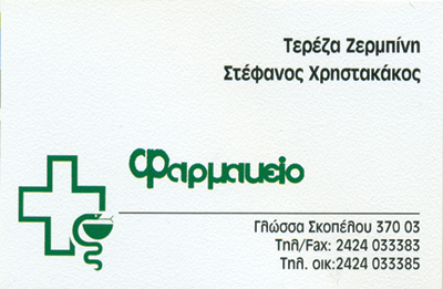 ΦαρμακείαΦαρμακευτικά Είδη και ΠροϊονταΥγείαΓλώσσα, ΣκόπελοςΣΚΟΠΕΛΟΣ ΜΑΓΝΗΣΙΑΣΜΑΓΝΗΣΙΑΘΕΣΣΑΛΙΑ24240333832424033385Μοιραστείτε τις πληροφορίες της επιχείρησής στα κοινωνικά δίκτυα: