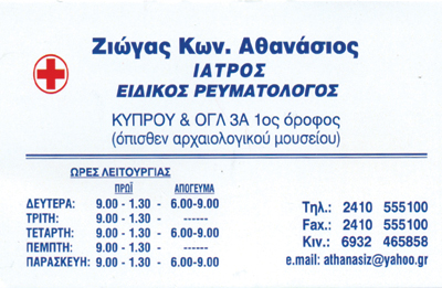 ΡευματολόγοιΥγείαΟγλ 3Α, Λάρισα6ης Σεπτεμβρίου 185, ΕλασσόναΛΑΡΙΣΑΕΛΑΣΣΟΝΑ ΛΑΡΙΣΑΣΘΕΣΣΑΛΙΑ2410555100 24930225086932465858athanasiz@yahoo.gr2ο ιατρείο: 6ης Σεπτεμβρίου 185, Ελασσόνα τηλ.: 2493022508 Μοιραστείτε τις πληροφορίες της επιχείρησής στα κοινωνικά δίκτυα:
